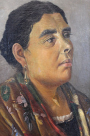 Ritratto di popolana, olio su tela, cm 50x30, firmato, entro cornice.