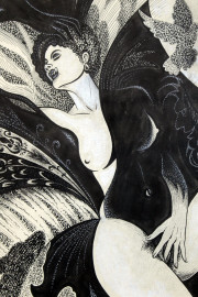 Scena erotica, tecnica mista su carta, cm 27,5x23, firmato, entro cornice.