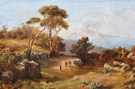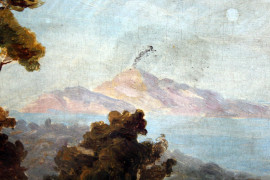 Scorcio del Golfo di Napoli, olio su tavola, cm 14x23, firmato, entro cornice