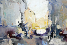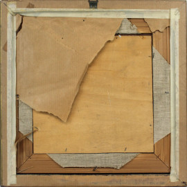 Scorcio urbano, olio su tavola, cm 23x23, XX secolo, entro cornice.