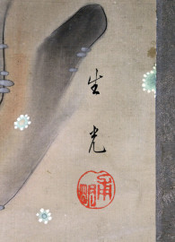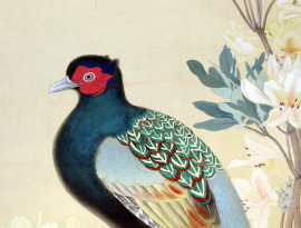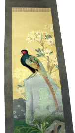 Scroll raffigurante fagiano giapponese, cm 185x55, arte orientale, XX secolo, (difetti).