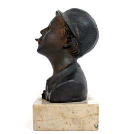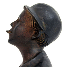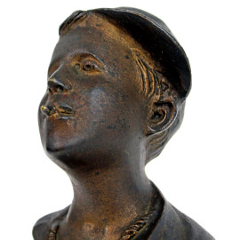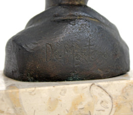 Scugnizzo con sigaro, scultura in bronzo, cm h 12,5, base in marmo, firmata De Martino.