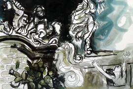 Senza titolo, litografia, cm 48x68, firmata e datata Guttuso '66, entro cornice.