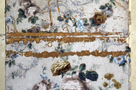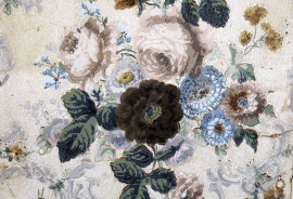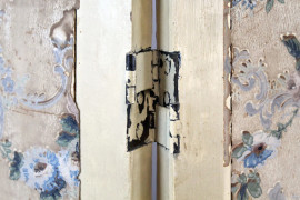 Separé a quattro ante in legno laccato e dipinto a motivi floreali, cm h 131x161,5, prima metà XX secolo, (difetti).