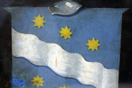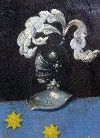 Stemma araldico, olio su tela, cm 28x22, XIX secolo, entro cornice, (difetti).
