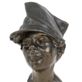Testa di scugnizzo, scultura in bronzo, cm h 15.
