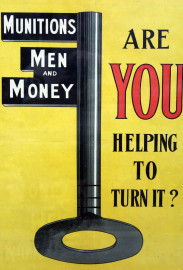 "The Key To The Situation. Are You Helping To Turn It?", stampa da un poster di propaganda britannica della Prima Guerra mondiale, cm 72,5,x47, XX secolo, entro cornice, (lievi difetti).