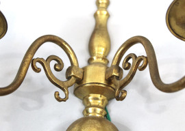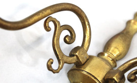 Tre appliques da muro a due luci in metallo dorato, bracci sinuosi, cm 27x13, XX secolo, (segni del tempo).