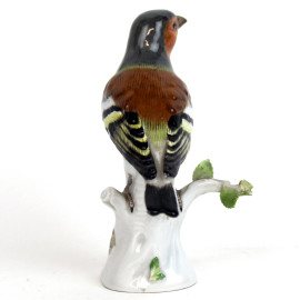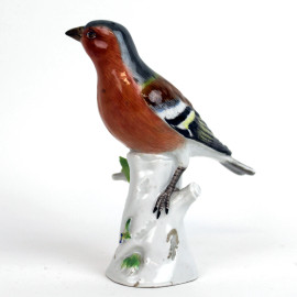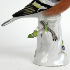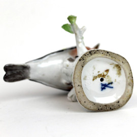 Uccellino su ramo, scultura in pocellana policroma,cm h 13,5, manifattura Meissen, (difetti).
