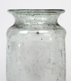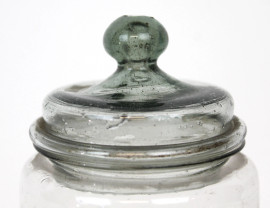 Un barattolo e due vasetti in vetro, alt. max cm 15,5, XX secolo, (difetti).