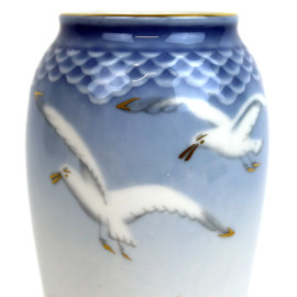Vasetto in porcellana con decoro policromo di gabbiani, cm h 14, marcato Bing&Groendahl alla base.