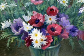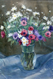 Vaso con fiori, olio su cartone, cm 66x49, firmato, entro cornice.