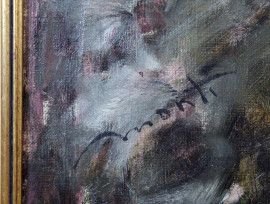 Vaso di fiori, olio su tela, cm 85,5x65, firmato Monti, entro cornice.