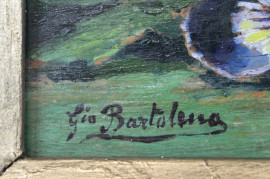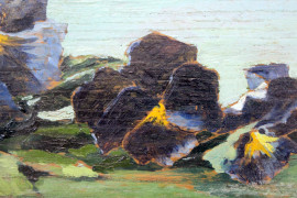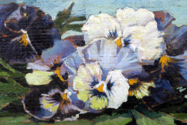 Viole, olio su tavola, cm 13x26, firmato, entro cornice.