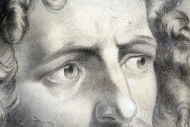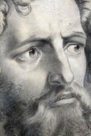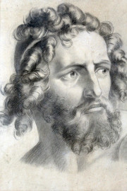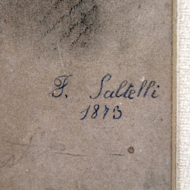 Volto d'uomo, disegno a matita su carta, cm 36x27, firmato e datato F.Saltelli 1873, entro cornice.