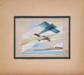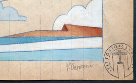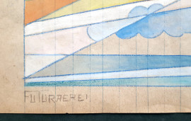 Aeropittore del Novecento, Futuraerei, aeropittura a tecnica mista su carta del Maestro Vittorio Caproni (XX sec.), cm 15x20,5, firmato e titolato, reca timbro dell’Artista, entro cornice.