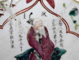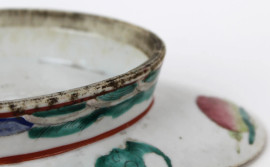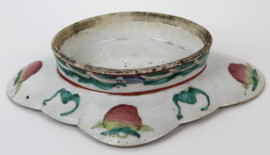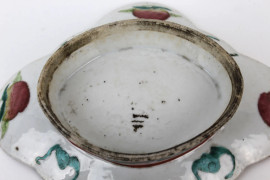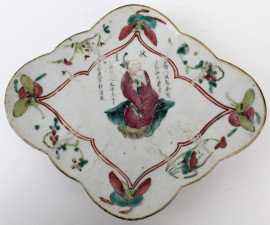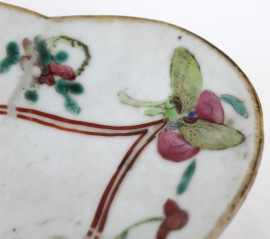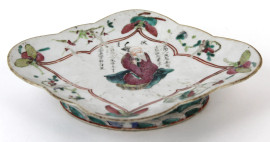 Alzatina in porcellana policroma, altezza cm. 4,5x19x22,5, Cina XX secolo