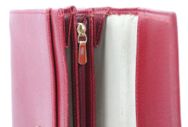 Anna Virgili, portafoglio in pelle rossa, cm 19x11x5, entro scatola originale