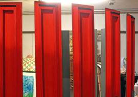 Anonimo del XX secolo, Installazione polimaterica, composto da 14 pilastri, altezza cm 205, (difetto)