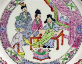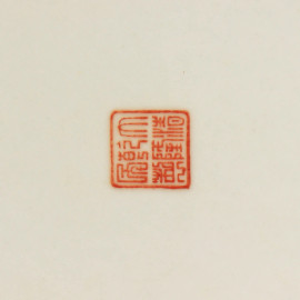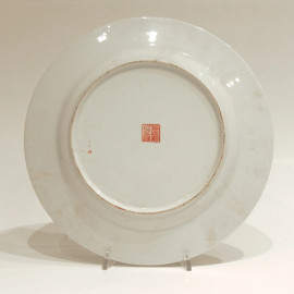 Antico piatto in porcellana cinese, tarda Dinastia Repubblica Popolare Cinese (XX sec.), finemente dipinto a mano, diametro cm 27, al retro marchio dinastico in lacca rossa, Cina Popolare