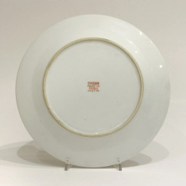 Antico piatto in porcellana cinese, tarda Dinastia Repubblica Popolare Cinese (XX sec.), finemente dipinto a mano, diametro cm 27, al retro marchio dinastico in lacca rossa, Cina Popolare