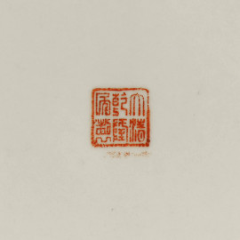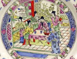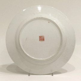 Antico piatto in porcellana cinese, tarda Dinastia Repubblica Popolare Cinese (XX sec.), finemente dipinto a mano, diametro cm 27, al retro marchio dinastico in lacca rossa, Cina Popolare