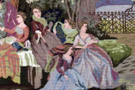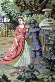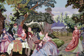 Arazzo a mezzo punto raffigurante paesaggio con scena campestre, cm 170x105, XX secolo