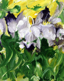 Astratto, acrilico su tela applicata su tavola, cm 51x41, XX secolo, entro cornice