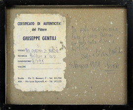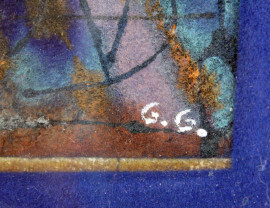 Astratto, olio su cartone, cm 17x23, siglato, entro cornice.