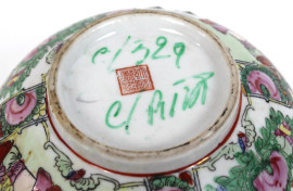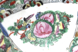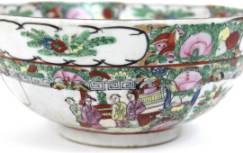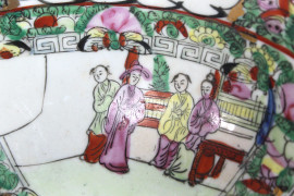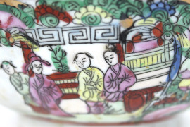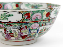 Bowl in porcellana policroma, interamente decorata con figure di corte e intrecci floreali, altezza cm. 10, diametro cm.23,5, Cina, XX secolo