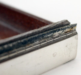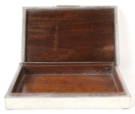 Cofanetto in legno rivestito in argento, cm 3x17x11, (difetti)