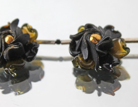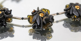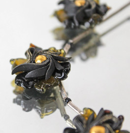Collana con decoro floreale in argento, vetro e materiale composto, lunghezza cm 21,5.