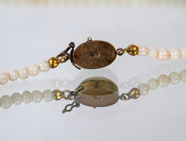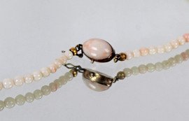 Collana in corallo rosa, ad un filo di sfere digradanti, chiusura in argento, gr.32