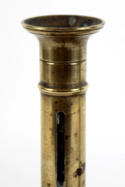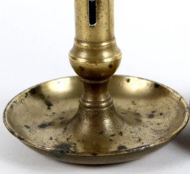Coppia di candelieri in metallo dorato, altezza cm. 19,5, (difetti).