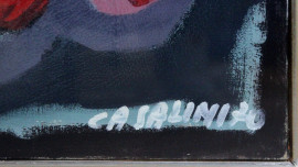 Coppia di figure femminili, olio su tela, cm 79x60, firmato Casalini, entro cornice.