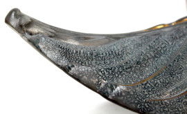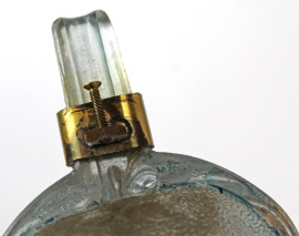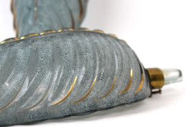 Coppia di foglie per appliques in vetro celeste con finiture dorate, cm 31x10,5, Francia, XX secolo, (mancante impianto elettrico)