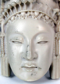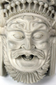 Coppia di maschere orientali in resina, altezza cm 14, XX secolo, (difetti)