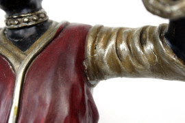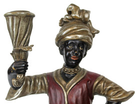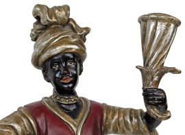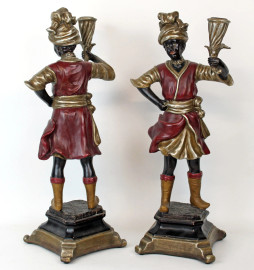 Coppia di moretti portacandela in resina dipinta, cm h 52, XX secolo, (uno recante restauri),