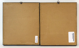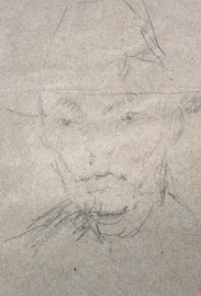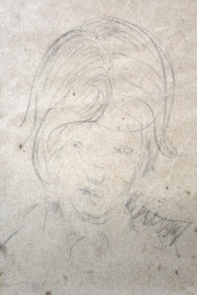 Coppia di ritratti, matita su carta, cm 13,5x10,5, XX secolo, entro cornice.