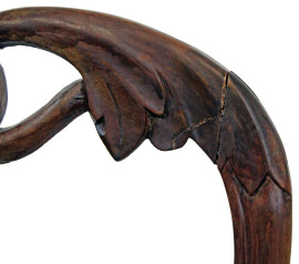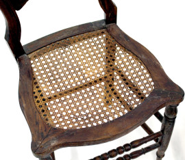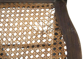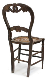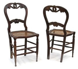 Coppia di sedie in noce, fine XIX secolo, schienali a giorno con cartella di linea sagomata, seduta in canneté, gambe tornite, cm h 88, (difetti).