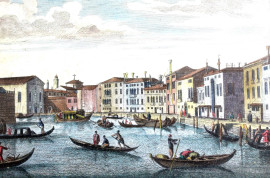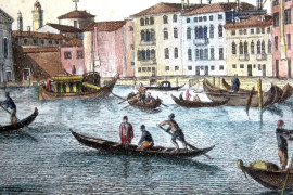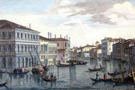 Coppia di stampe a colori raffiguranti vedute di Venezia, stampate per Carington Bowles (1724–1793), cm 17x28, entro cornici.