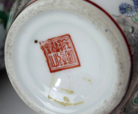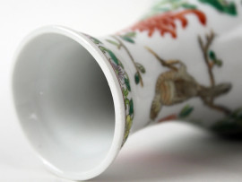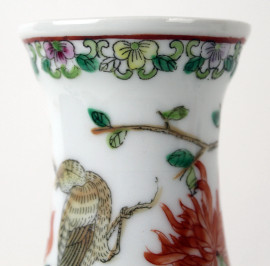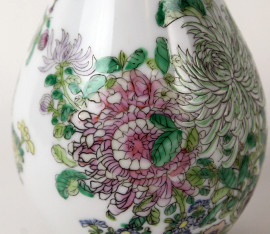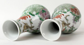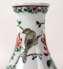 Coppia di vasi in porcellana bianca, con decori floreali policromi, arte orientale, XX secolo, cm h 21