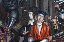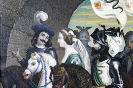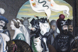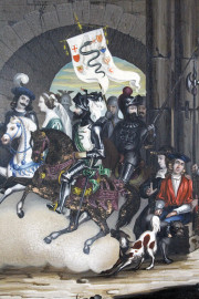 Corteo trionfale, olio su tavola, cm. 30,5x26,5, inizi XX secolo, entro cornice.