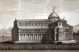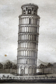 Dieci stampe raffiguranti principali vedute e scorci della Città di Pisa, incisore A. Coppiardi (notizie XIX secolo), cm 22,5x29,5, entro cornici.
