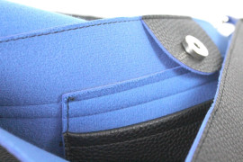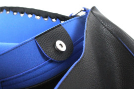 Fez, borsa in ecopelle nera, interno blu, cm 30x37x13