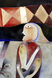 Figure femminili, acquarello su carta, cm 73x53, firmato, entro cornice