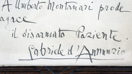 Gabriele D'Annunzio, fotografia autografa del 1931 con dedica, cm 22x16,5, entro cornice, (difetti sulla foto).