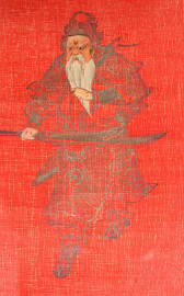 Guerriero, dipinto su carta, cm. 40,5x13,5, Cina XX secolo, entro cornice.