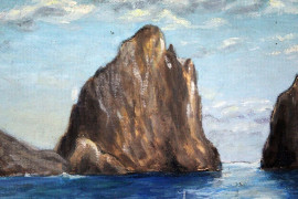 I Faraglioni di Capri, olio su tela, cm 44,5x63, firmato, entro cornice