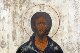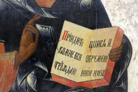Icona russa del XIX secolo, raffigurante Cristo Benedicente, tempera su tavola, cm 53,5x43,5
